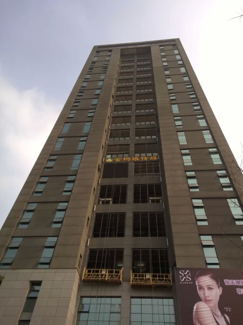 此P10戶外全彩顯示屏是用一個一個的箱體拼接而成,在樓下可以清晰的看到高樓外的顯示屏里所播放的消息。